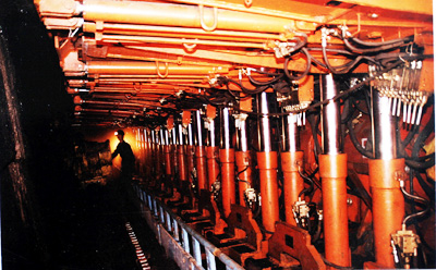 該支架具有與2L型支架相同的優(yōu)點和相同的適用范圍,重量也在0.7-1.5噸之間。其特點是專門針對薄煤層設(shè)計的頂梁、支柱和液控系統(tǒng),最小采高可達(dá)0.8m。在極薄煤層中,人員趴在底板上扳動手柄即可移架。可用于大于0.8m的采高工作面,尤其是在雞窩煤等煤層厚度變化大的地質(zhì)條件中,可通過放頂煤等措施一次采出局部厚度十幾米的煤炭,支柱下端可配有防止扎底的浮動式底盤。推薦使用的工作面傾角為小于30°。